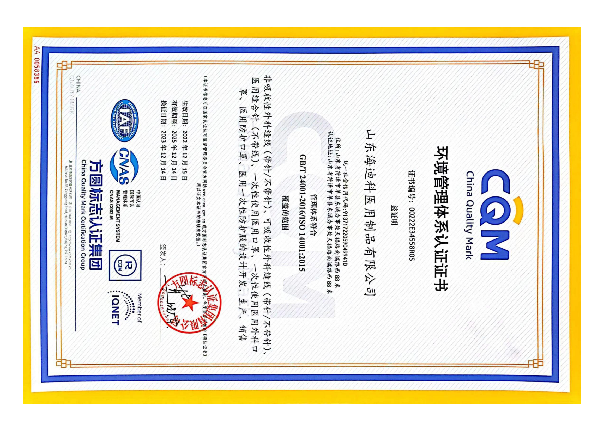 海迪科醫(yī)療器械生產(chǎn)許可證